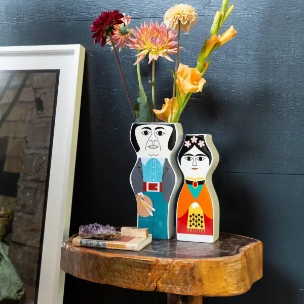 Retrouvez le célèbre couple d’artiste mexicain Diego et Frida dans un set de vase en céramique conçu par Ingela P. Arrhenius.